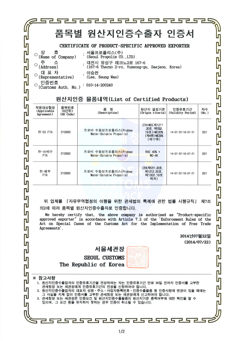 Certificate of FTA Product-Specific Approved Exporter