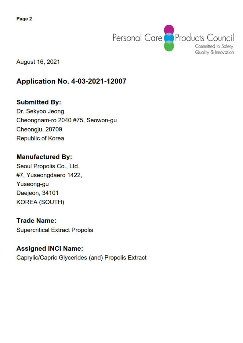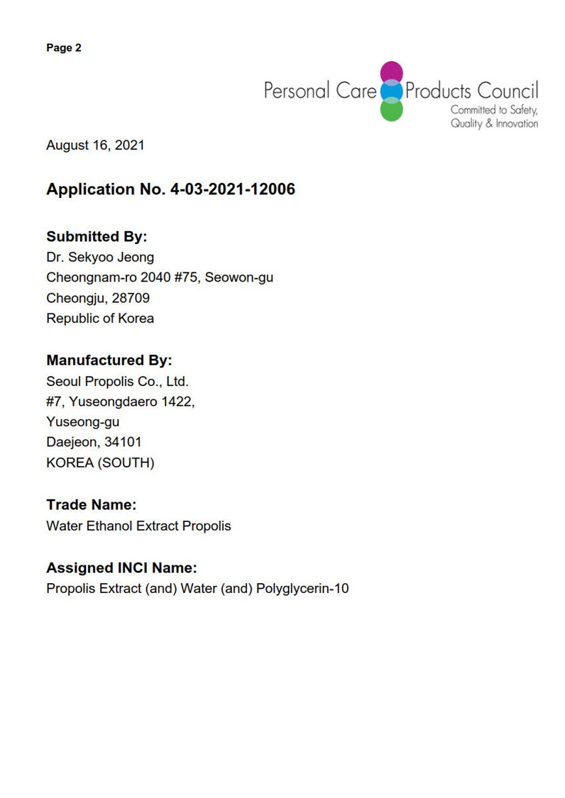 International Cosmetic Ingredient Dictionary and Handbook (ICID) Inclusion for Water-soluble Propoli