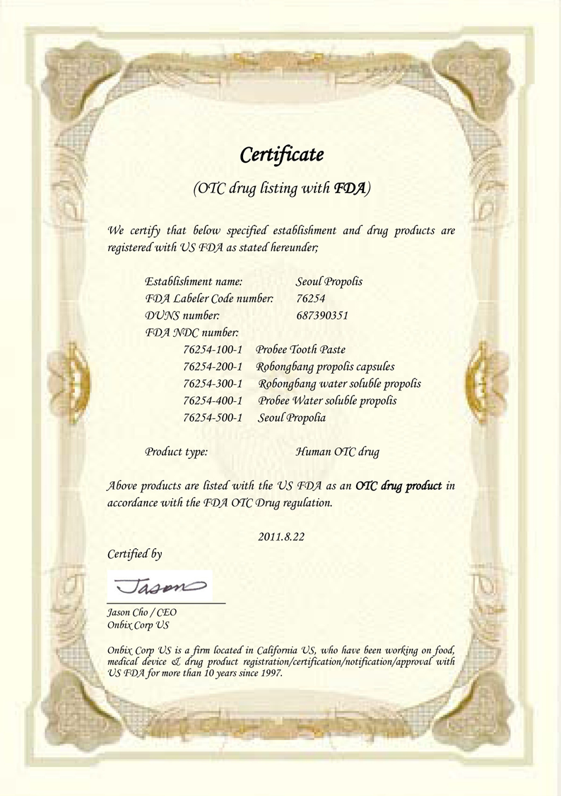 U.S. FDA OTC Certification