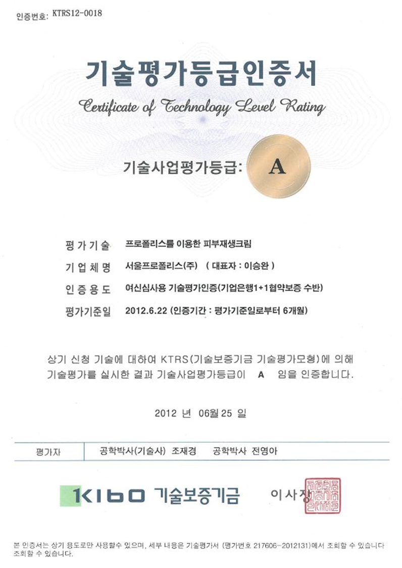 Technology Guarantee Fund Technology Evaluation Grade Certificate