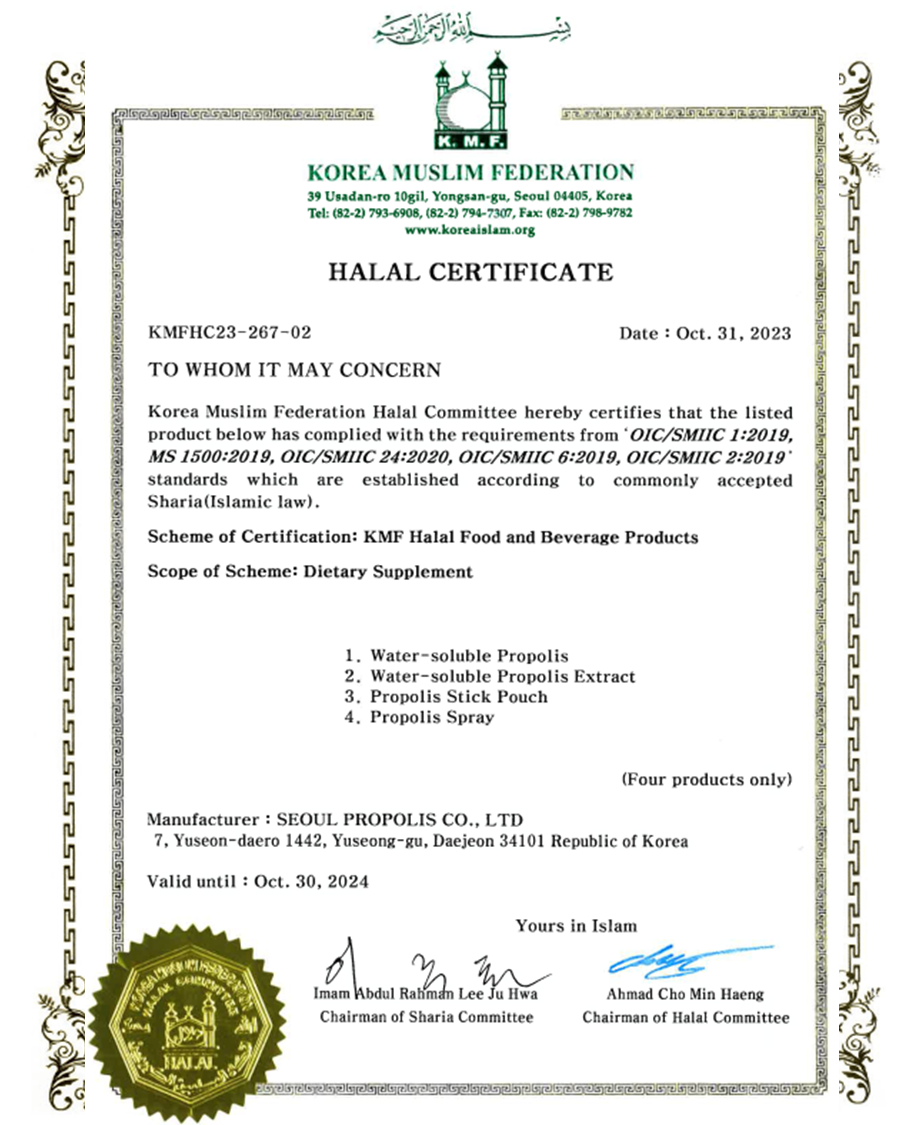 Certificate of Recognition as a HALAL standard