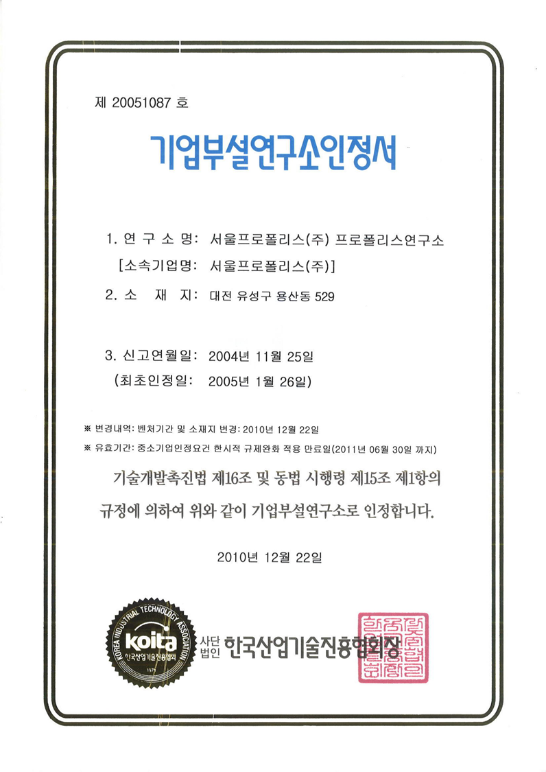 Approval Certificate for Research Institute Company Establishment