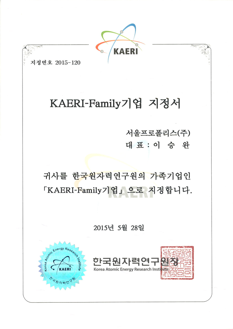 Designation as a KAERI-Family Enterprise