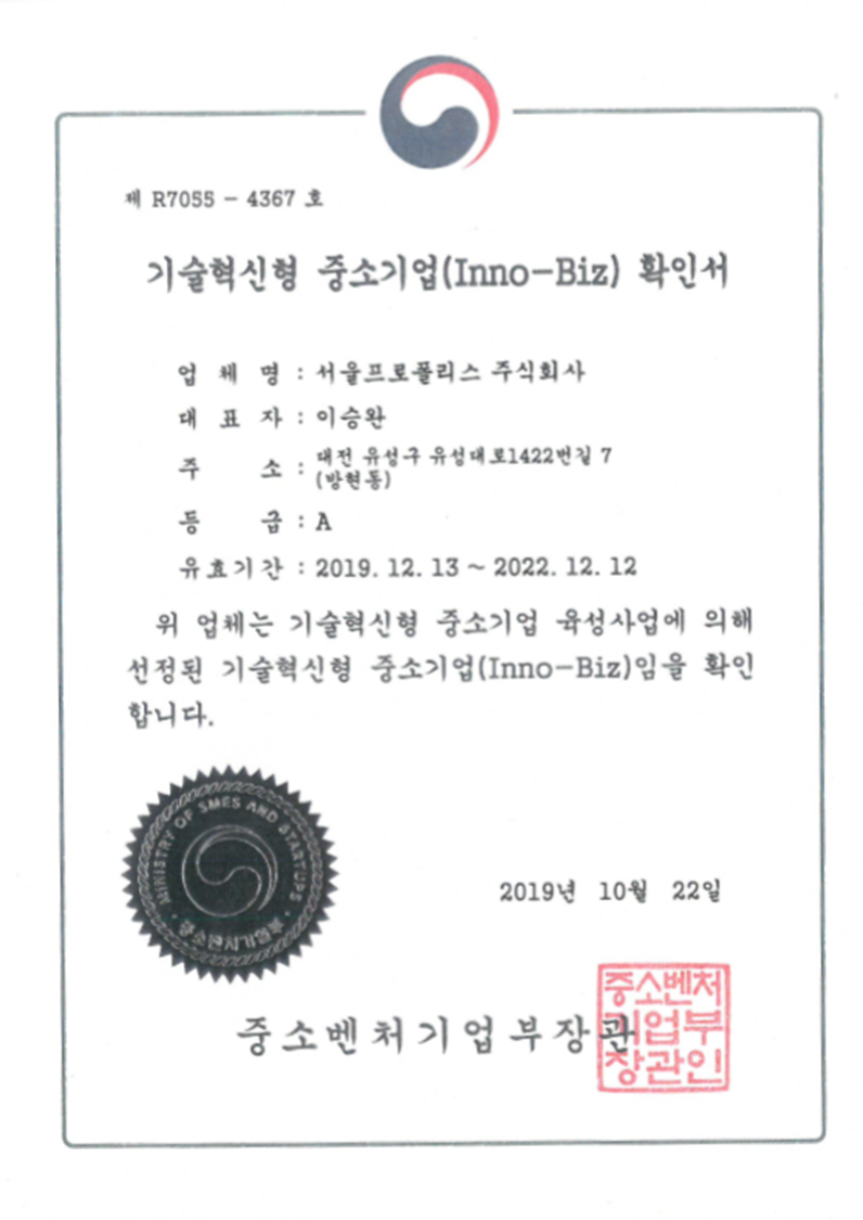 Certificate of Confirmation as a Technological Innovation Small and Medium-sized Enterprise (INNOBIZ