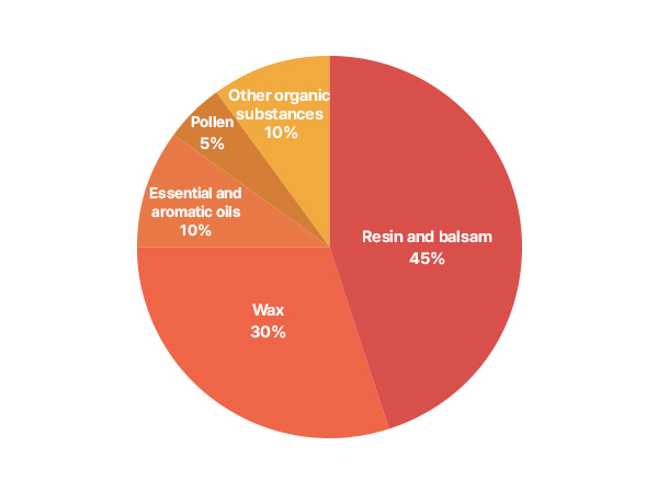 Propolis’ main components are: 1. Resin and balsam (45%),