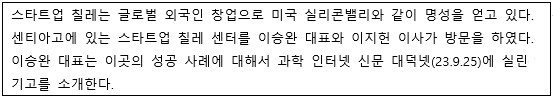 필자는 오래전부터 대전을 국내 유학생 창업 지역(규제 Free Zone)으로 지정 받아 글러벌 스타트업 생태계를 만들자는 안을 정부와 대전시에 건의 한 적도 있다. 그 당시 칠레 스타트업 성공 모델을 소개한 인연이 있어 최근 이곳 현황과 운영이 궁금해졌다