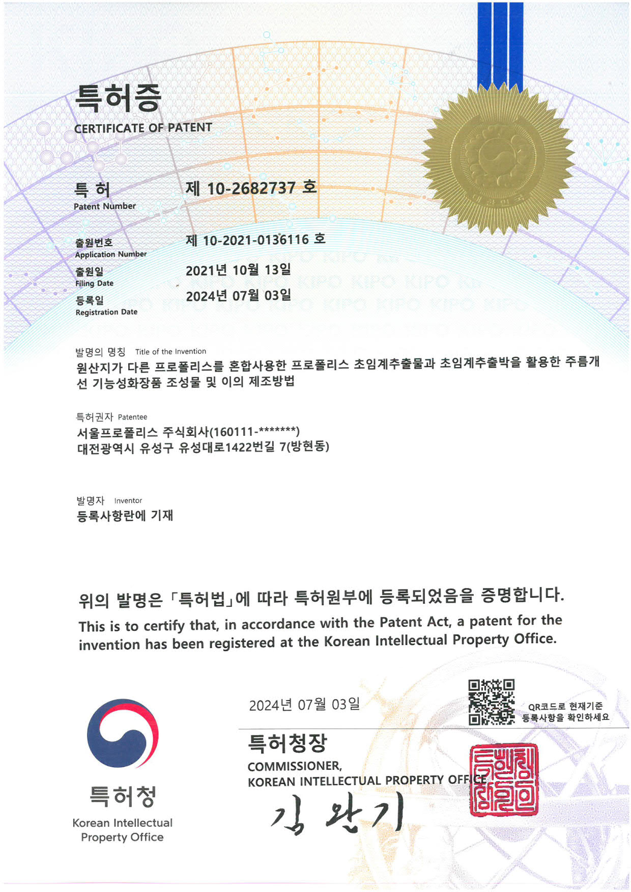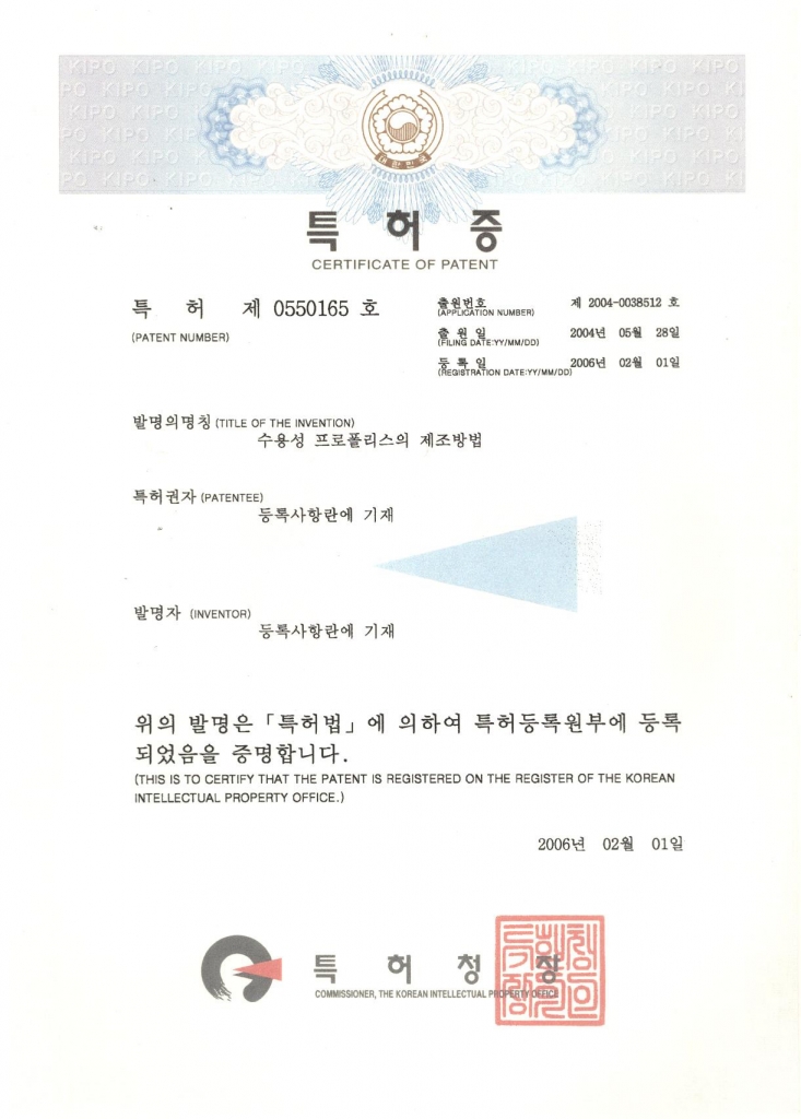수용성 프로폴리스 제조방법에 대한 특허