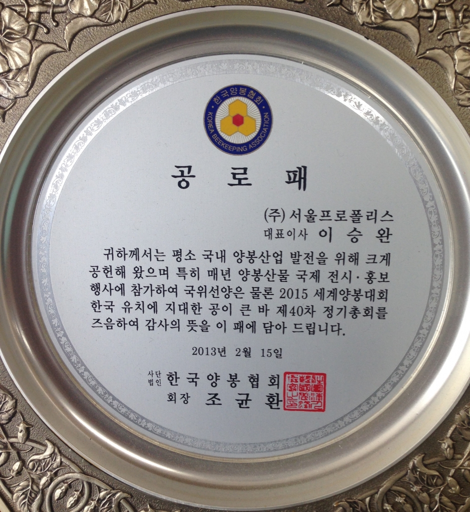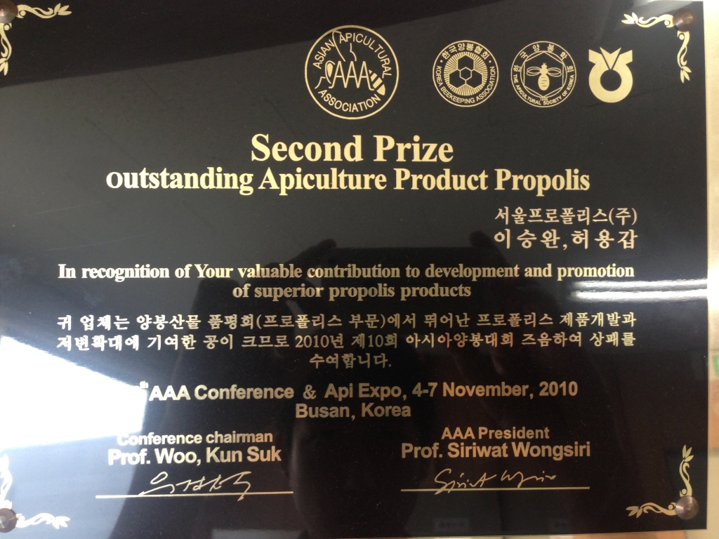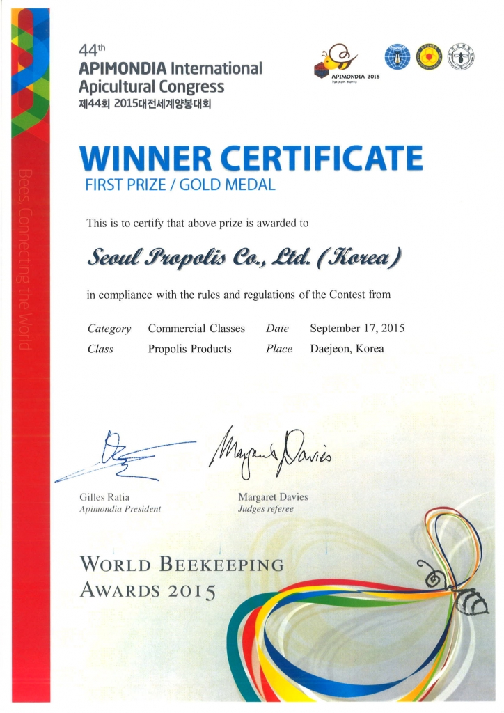 2015 세계양봉대회 (APIMONDIA) 프로폴리스 기술 부문 금상