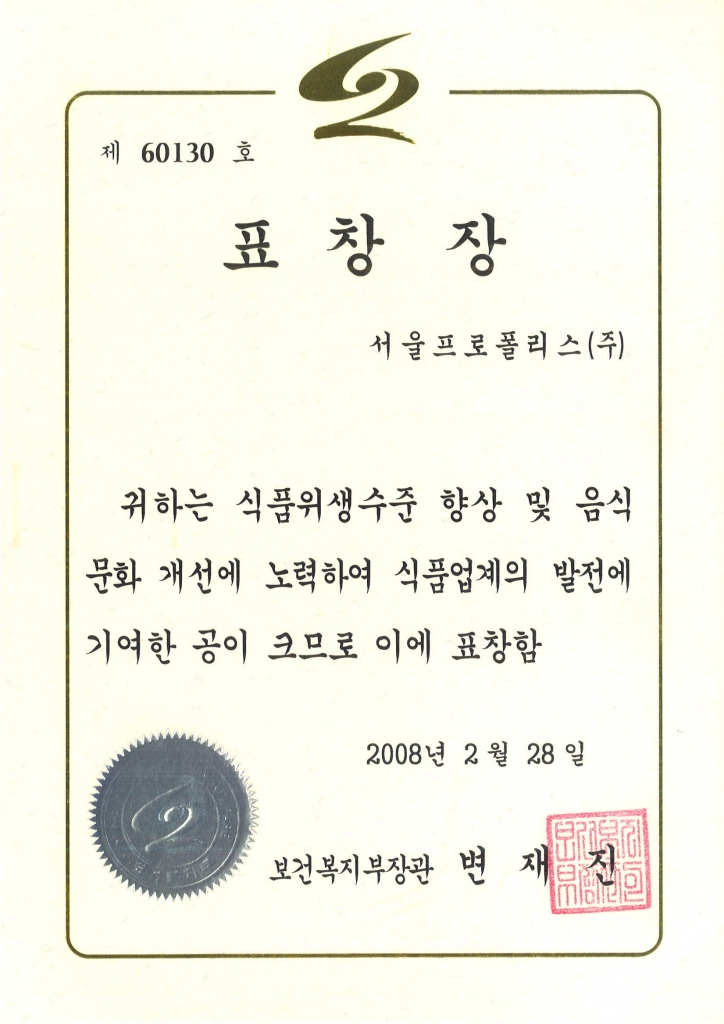 보건복지부장관상 수상 (보건복지부)