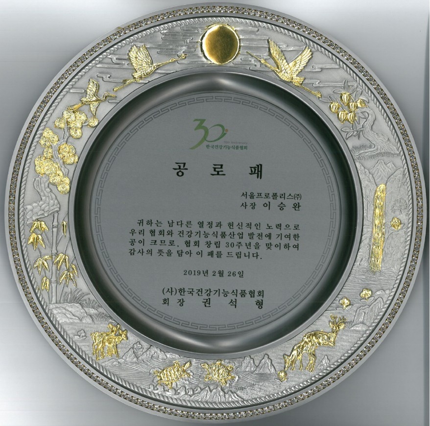 한국건강기능식품협회 30주년 공로패