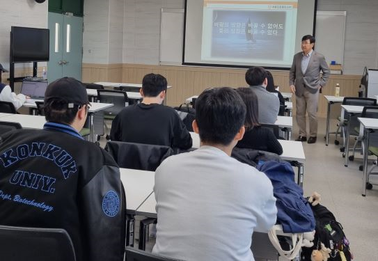 11월 7일 건국대학교 글로컬 캠퍼스에서 무역학과 4학년 대상으로 '인생은 속도가 아니라 방향이다'로 창업 특강을 하였다.